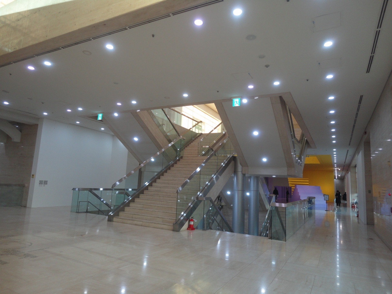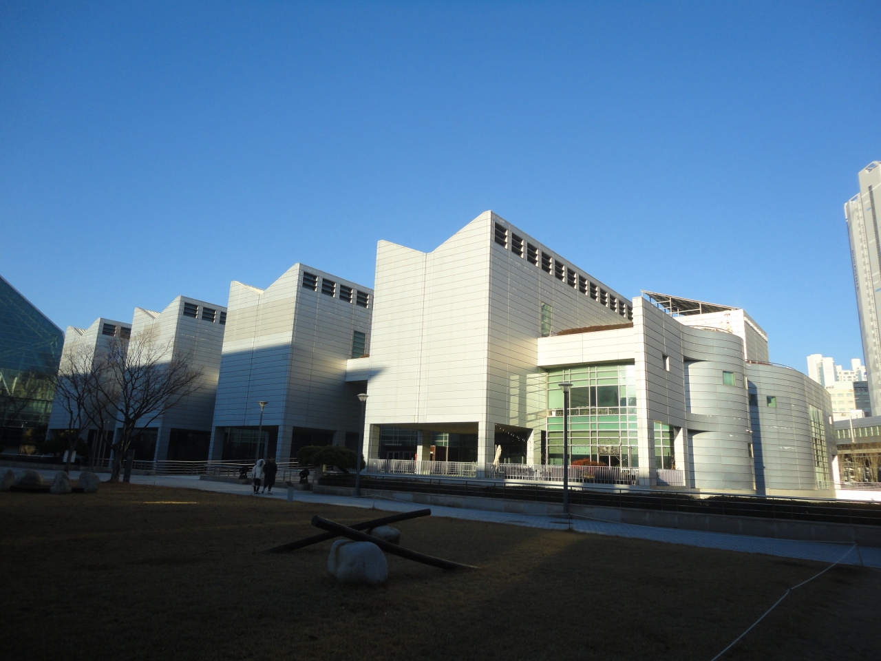 BEXCO駅からすぐ、積み木をずらして立てたような個性的な形の建物で、すぐに分かりました。美術館の建物の前には広いお庭もあって、居心地の良い空間でした。