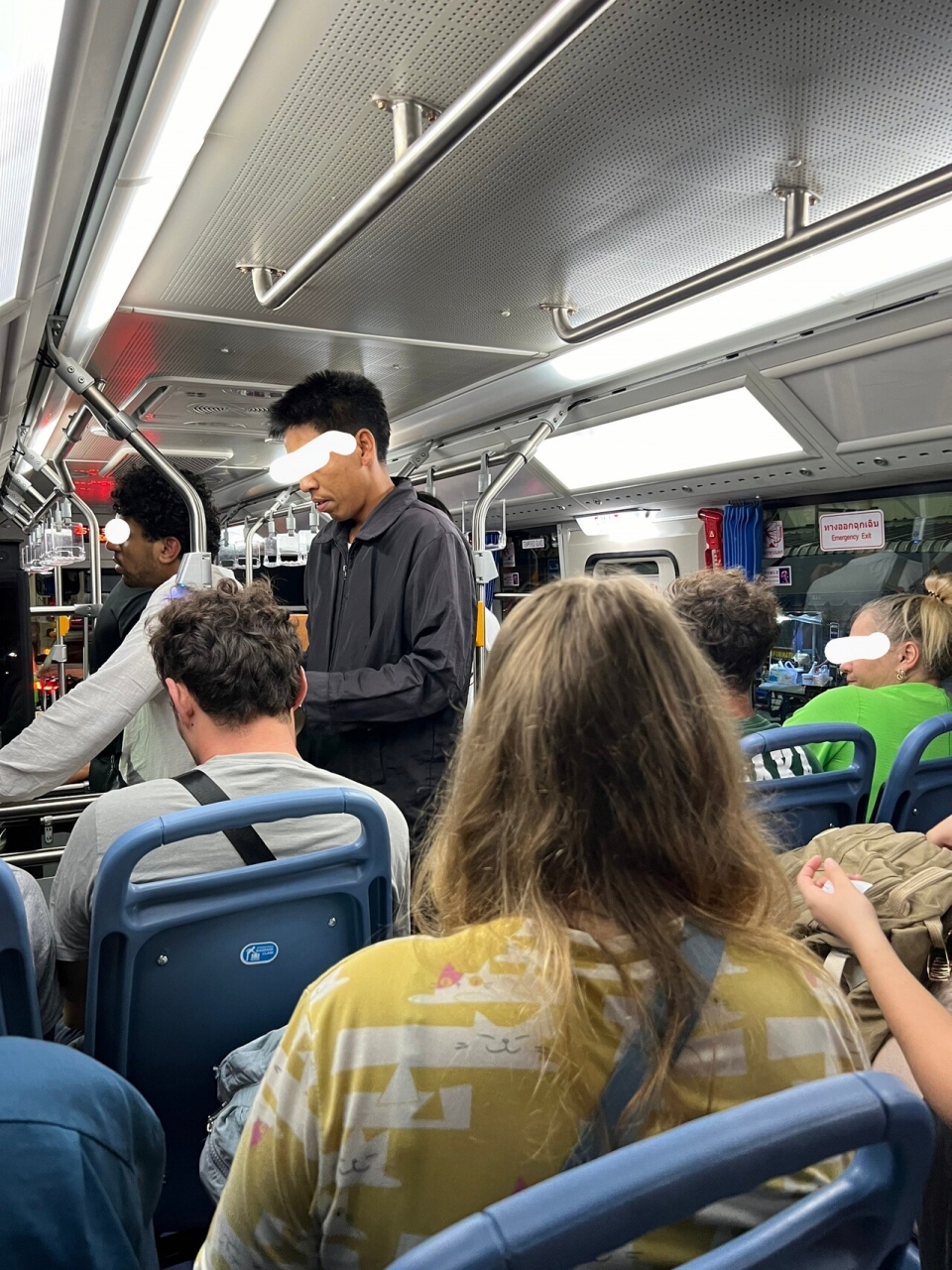 空港とラワイビーチを結ぶ、ビーチエリアから空港の唯一の公共交通機関で、安く行くなら現時点これしかない。各ビーチのバス停に寄るので時間は前後します。パトンビーチ始発で乗ったときは20分早く着き、13時すぎ発のときは心配でかなり余裕みて乗りましたが15分遅かった。夕方のラッシュ時は2時間というのもみかけました。でもタクシーアプリ750バーツのところ100バーツなら仕方ない。WiFiがあり、満席になることもあるので早めに行くべし。