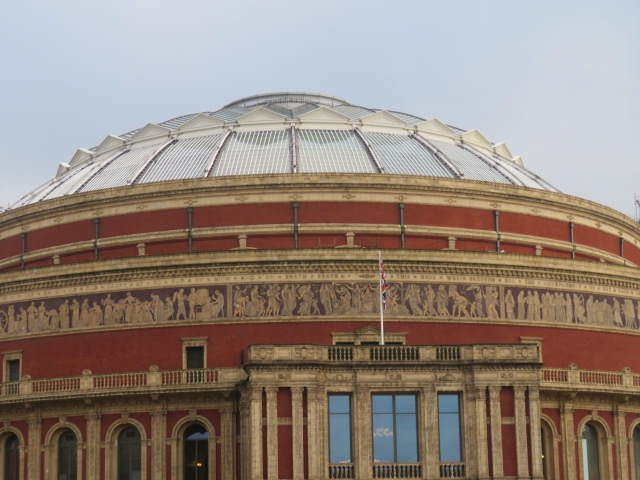 アルバート公記念碑のすぐ前にあるコンサートホールです。エンジ色の円柱の美しい建築物で、外観を見るだけでも価値があります。よく見ると、円柱の上の部分は、人をかたどった精巧なレリーフで囲まれています。結構小さいので見落とさないように。