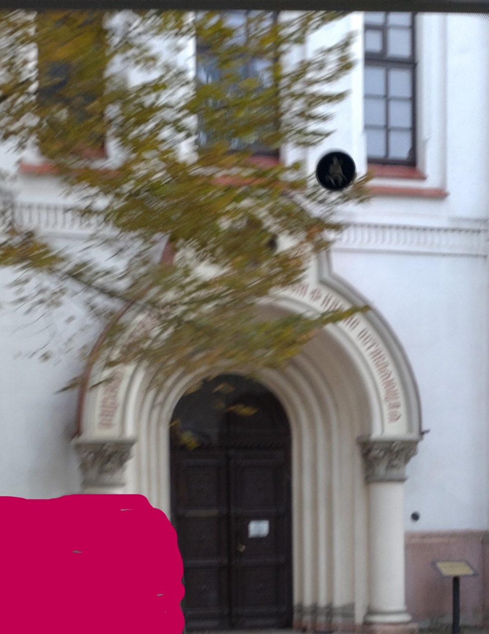 「 聖アンナ教会」から「ウジュピス共和国」への入口にあたる「ウジュピオ橋」へ向かっていると、白く大きくお城のようにも見える立派な教会がありました。「ウジュピオ橋」にほど近い場所です。「ロシア正教教会」とのことでした。ヴィリニュスの他の教会とイメージがかなり違います。