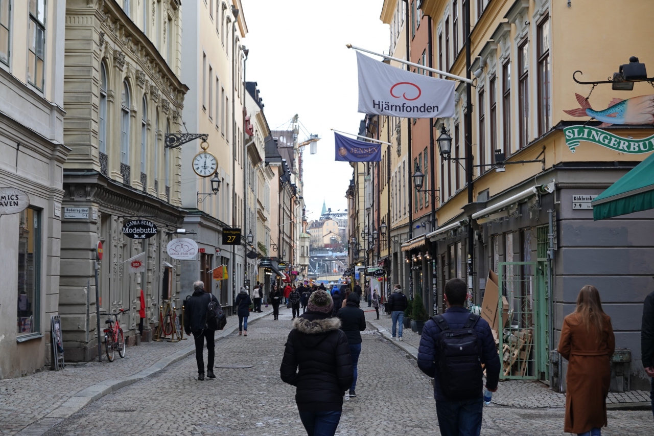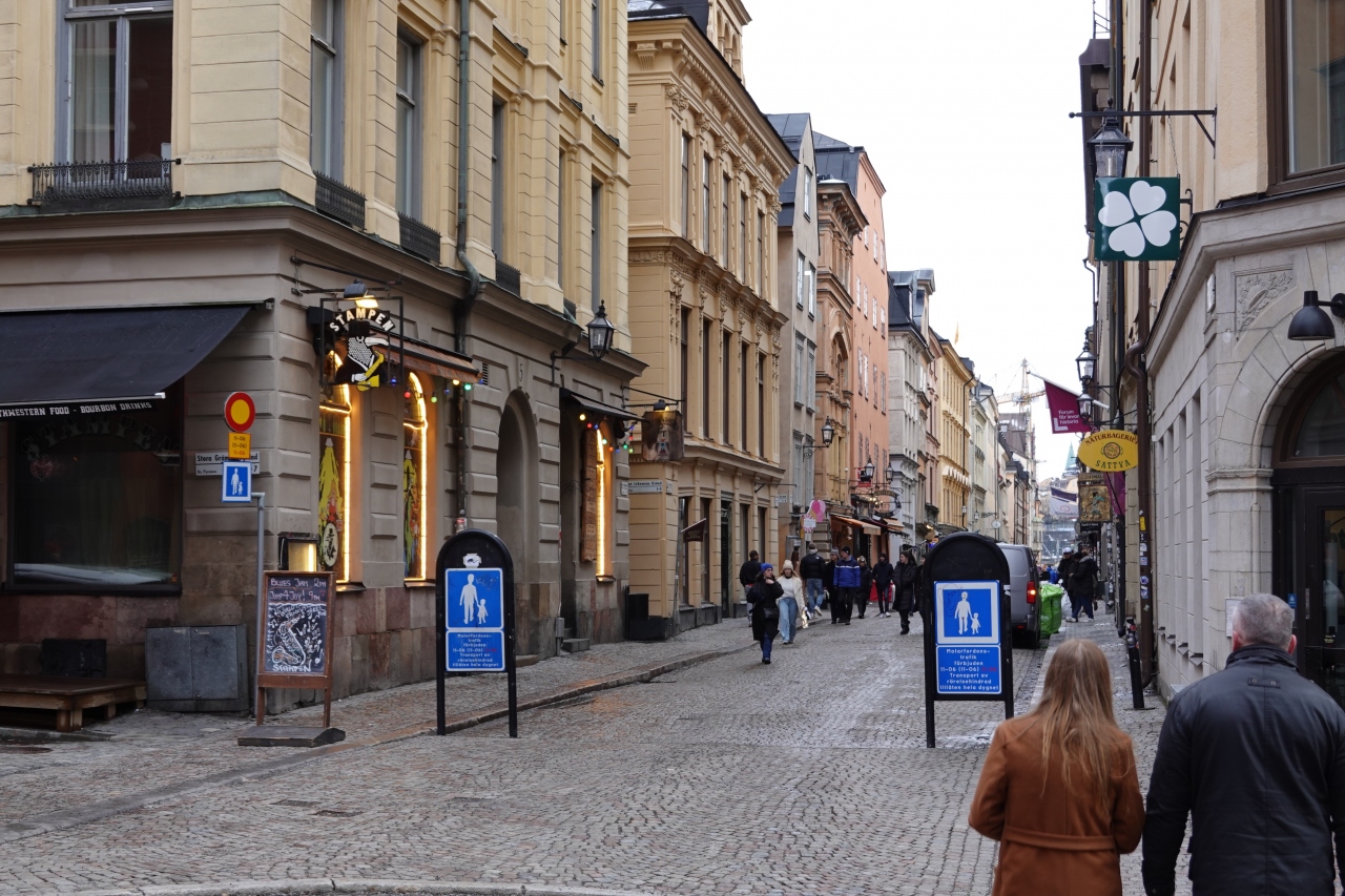ストックホルム中央駅から徒歩約20分程でアクセス可能、綺麗な街並みや小道が楽しい旧市街。歩行者天国になっているところもあり、車を気にせず歩けます。基本的には石畳でベビーカーや車いすは少し困るか。飲食店も多くランチやディナーでも便利。一番の観光地だけあり賑わっています。