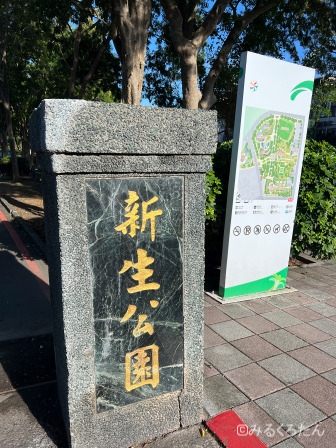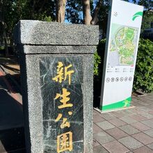 大きな公園で、園内は植物が綺麗に整備されているエリアや