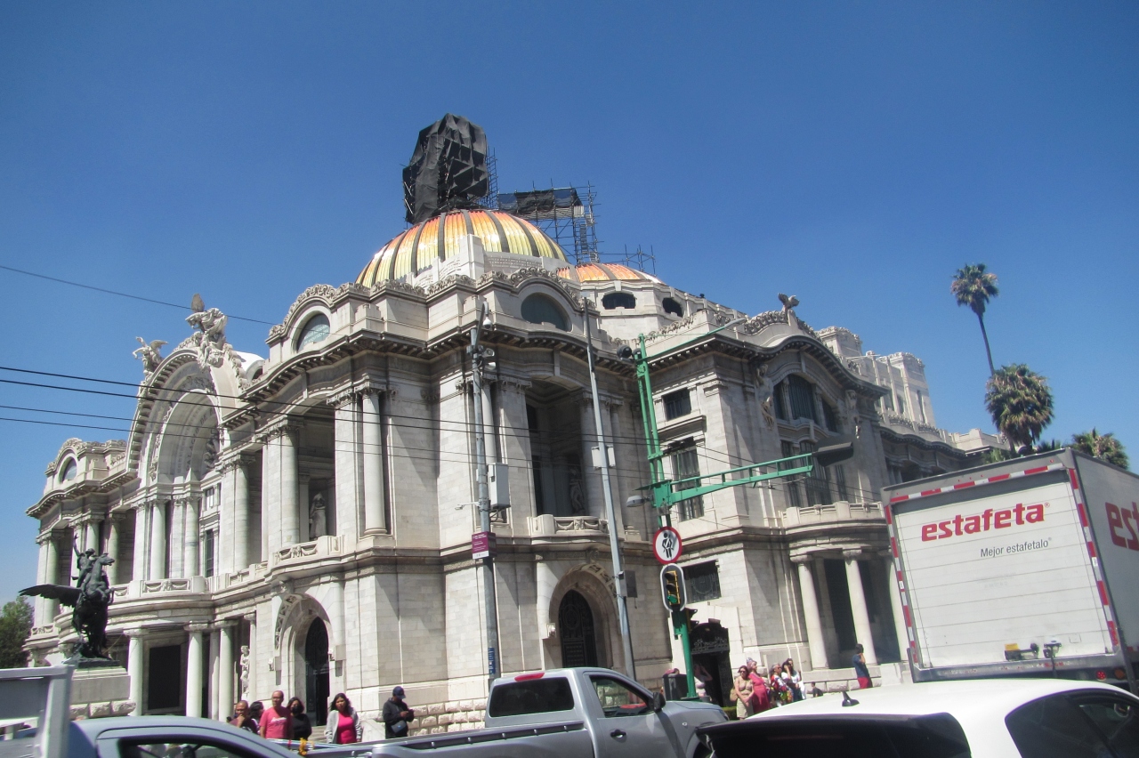 中は美術館になっているようで入り口に展示内容の旗が掲げられていました