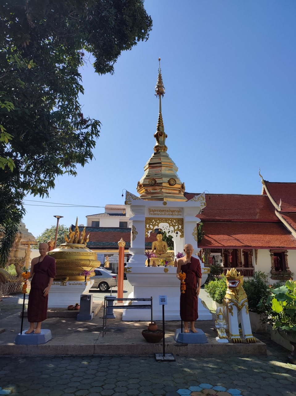 旧市街の北側にあり、ワットロークモーリーを見学した後で周辺の散策で立ち寄りました。金運にご利益があるお寺らしく、境内に大きな金色の瓶が置かれていましたが、タイにはキラキラしたお寺が多いそれほどは特別感はないですね。