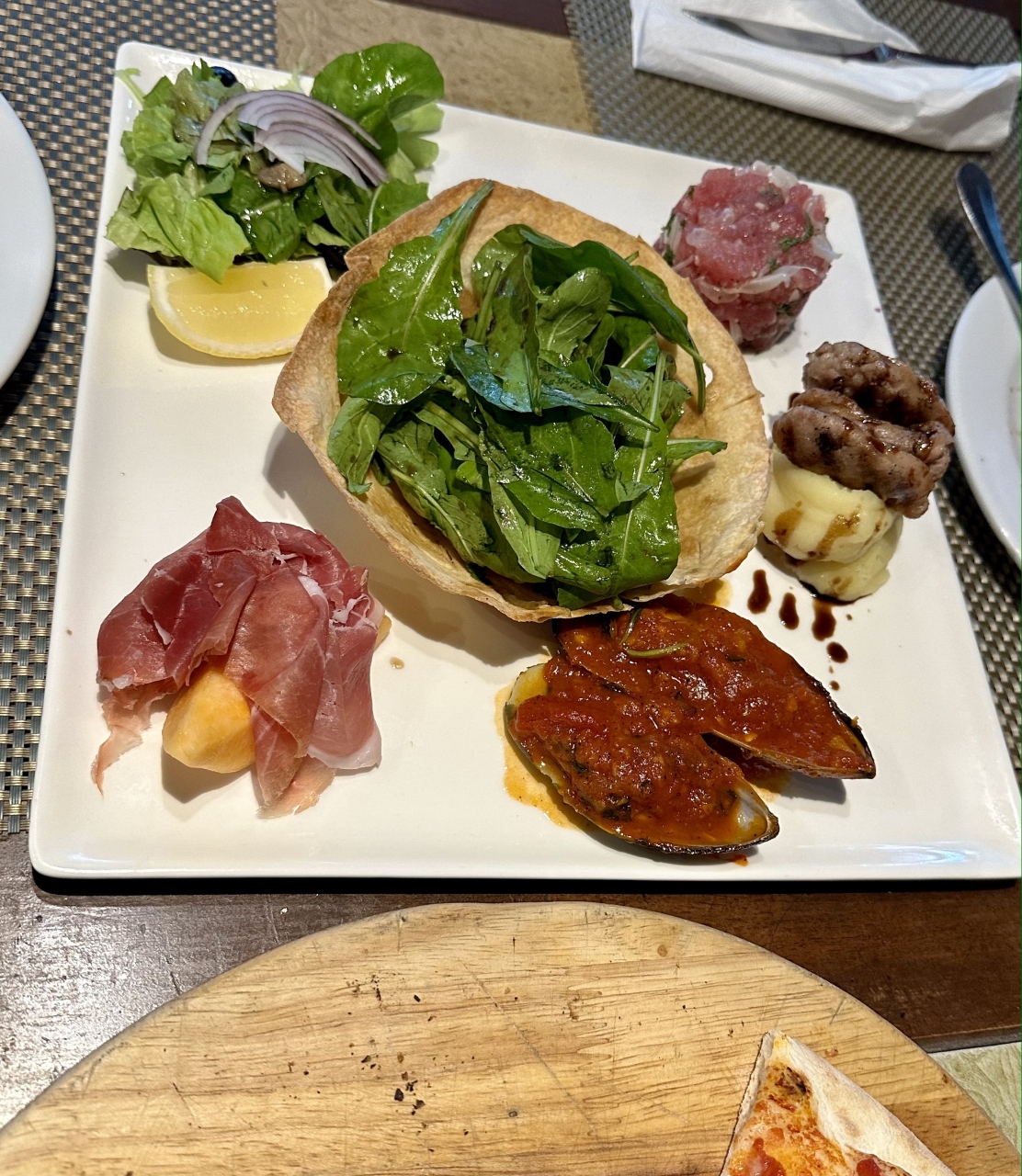 料理は、特別に豪華なものはないのだが、いろいろなお酒を飲みながら、イタリアン料理を摘む感じ、かな…