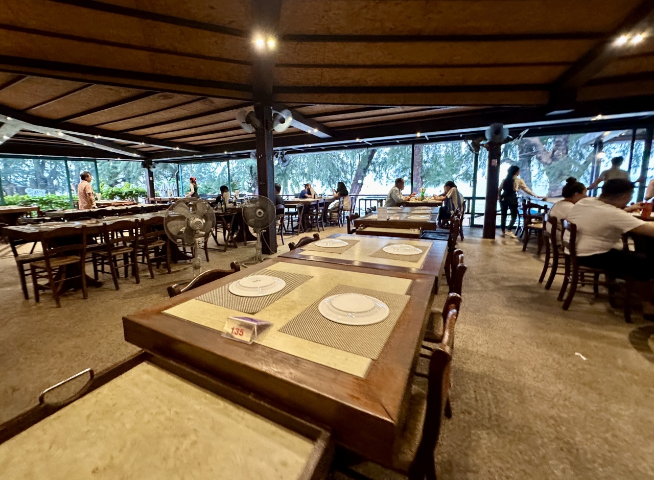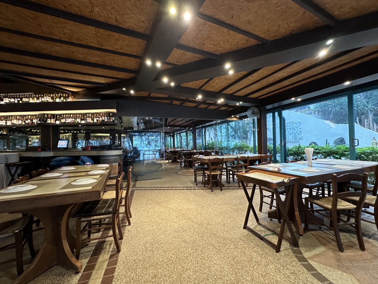 中は兎も角、だだっ広く、吹き抜けで、向こうには、ビーチが見えて、爽やかな感じ。