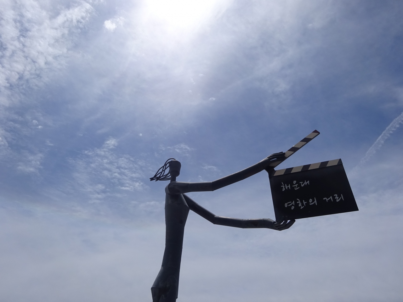 釜山の海雲台映画通りです。場所は海雲台ですが、いわゆるビーチという場所からは少し離れたような場所にあります。それでも、海のそばなので景色は良くて、解放感もあります。海雲台シネロードと壁に書いてありました。韓国の映画に詳しければ、さらに楽しめます。