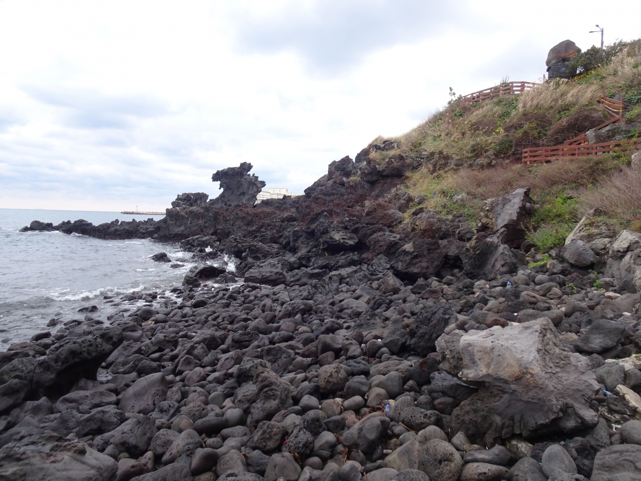 約200万年前に漢拏山(ハルラサン)が噴火し、その溶岩が固まって形成された奇形岩が長い歳月を経て、波風に洗われ浸食した岩の形が龍の頭に似ていることから、この名が付けられたそうです。