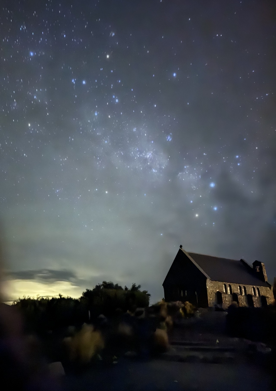 少し曇っており、夜23時頃に善き羊飼いの教会まで星空を見に行きましたが、綺麗に見られず‥