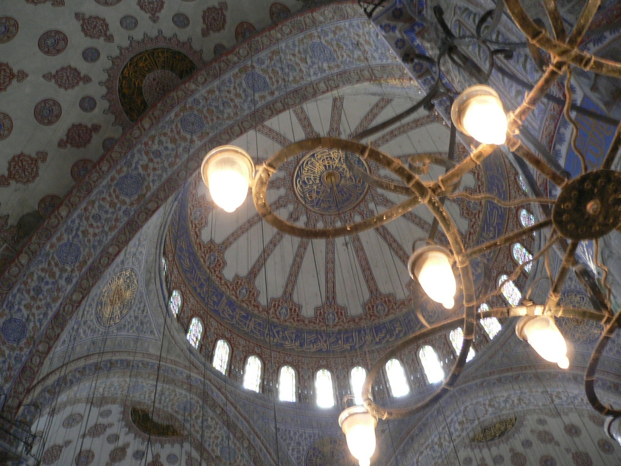 インタンブールの世界遺産のスルタンアフメトモスクは内装の青のイズニックタイルから通称ブルーモスクで呼ばれています。イスラム教の祈りの場で外観はミナレットの塔が6本が立ち、内部は高い天井、美しい装飾には圧倒されました。イスタンブールに来る内外の観光客が必ず観光見学に訪れる名所です。