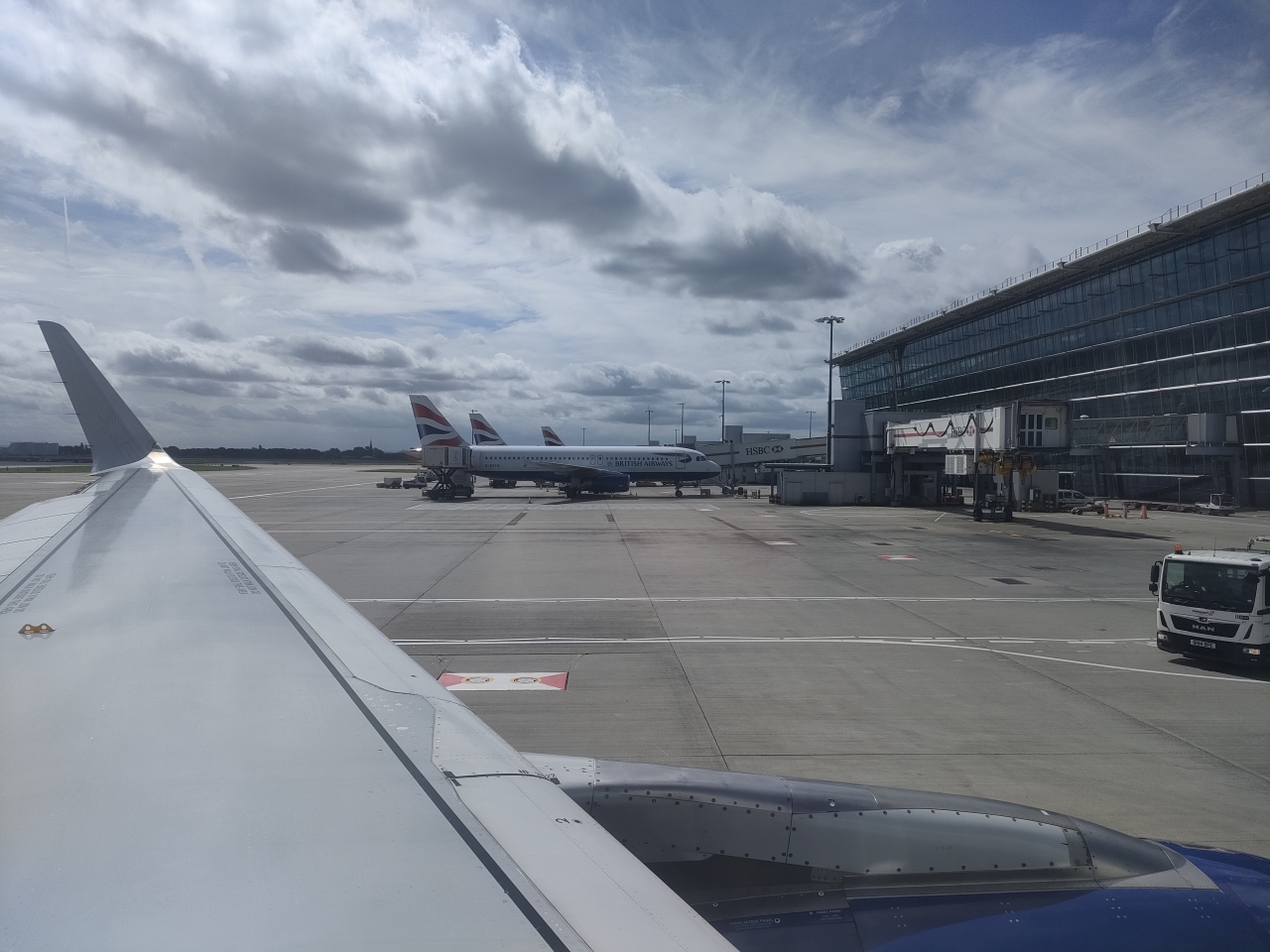 マドリード→ロンドン→ダラスフォートワースへの経由地としてこの空港を利用しました。どちらの便もBAです。乗り継ぎ時間が1時間しかなく、マドリード出発が1時間遅れたため、どうなるかと心配しましたが、ロンドン発の便も1時間遅れたため、無事乗り継ぐことができました。巨大な空港で広さがハンパないため焦りましたが、何とかなりました。