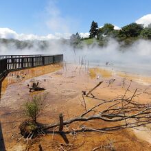 温泉地で有名なロトルアの街にあります。普通の広々とした公園内のあちらこちらで温泉が湧いていたのでびっくりしました。大きな池は湯気で溢れて、風が吹くと周囲が見えなくなってしまいました。小さな川も温泉が流れていますが、とても熱そうで触れそうにありません。誰でも自由に散策できる公園の中で、地球が生きている感じを体感しました。