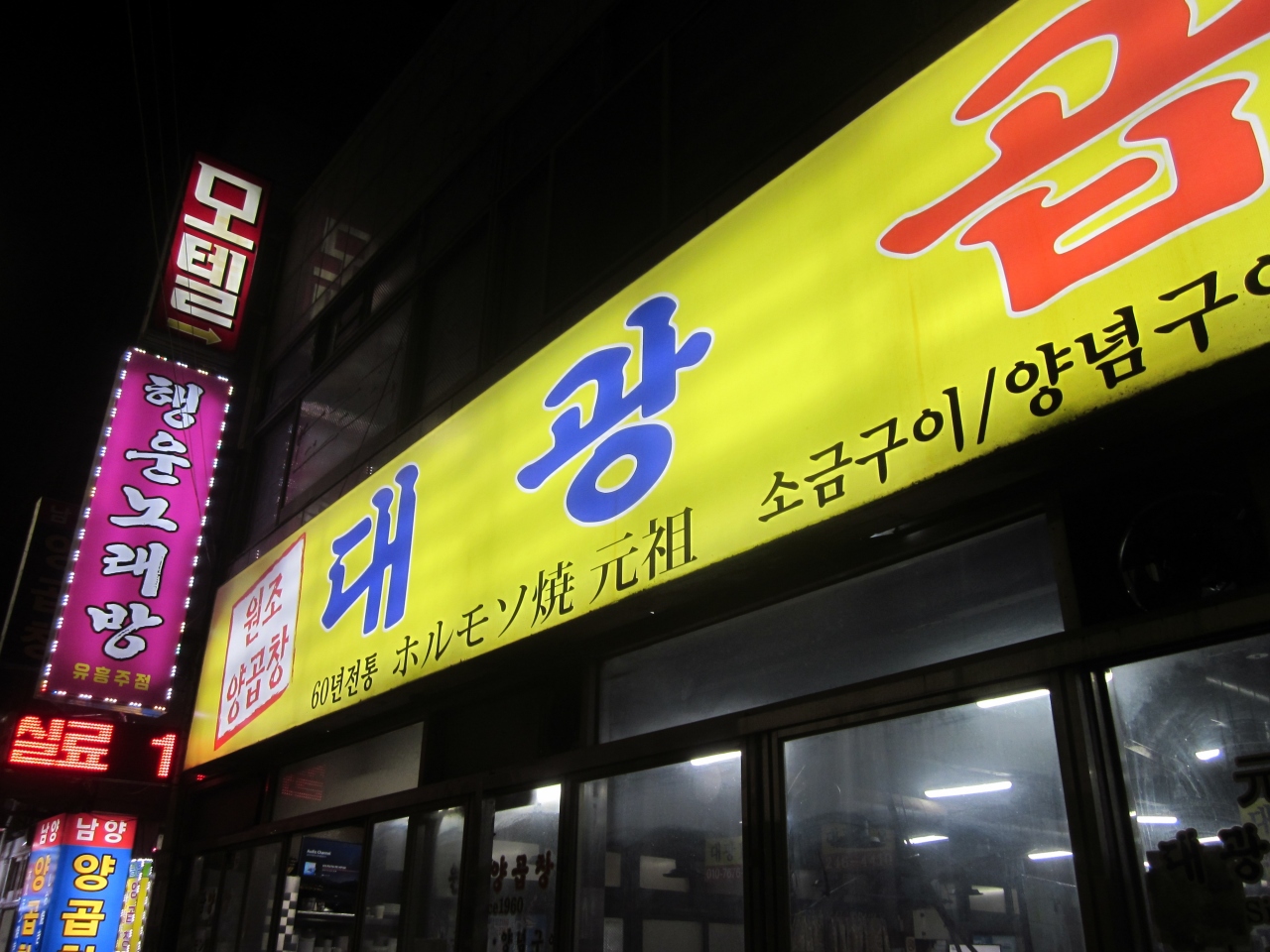 一人旅で釜山に旅行に行って来ました。この日の夕食は、チャガルチ駅の近くにあるホルモン焼きのお店に行きました。チャガルチ駅から徒歩ですぐです。