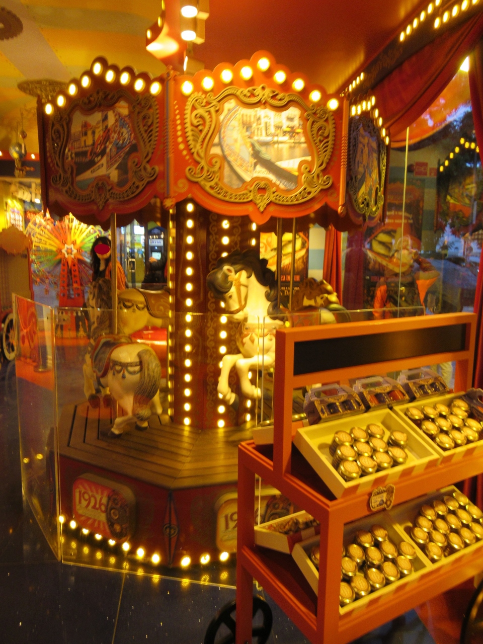 店内にはミニカルーセルがあったり、フォトスポットのイワシの缶詰の椅子があったりしします。