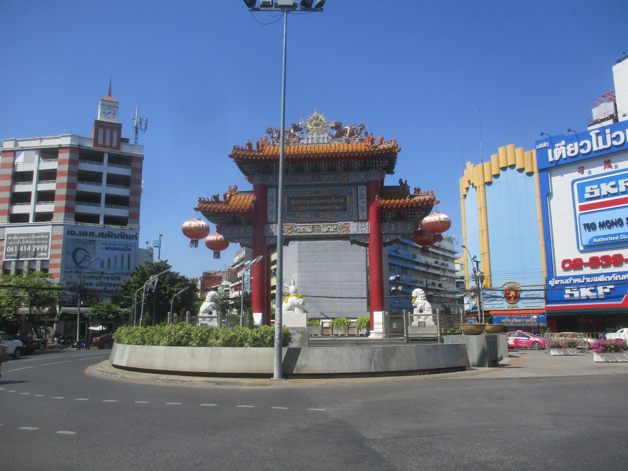 ヤワラート通りの入口にあるのが、チャイナタウンを象徴する牌楼です。1999年、プミポン前国王の生誕72年を祝うために、中国系タイ人コミュニティーによって建てられたものです。意外と歴史の浅い門で、定期的にメンテナンスされているのか新しく感じました。