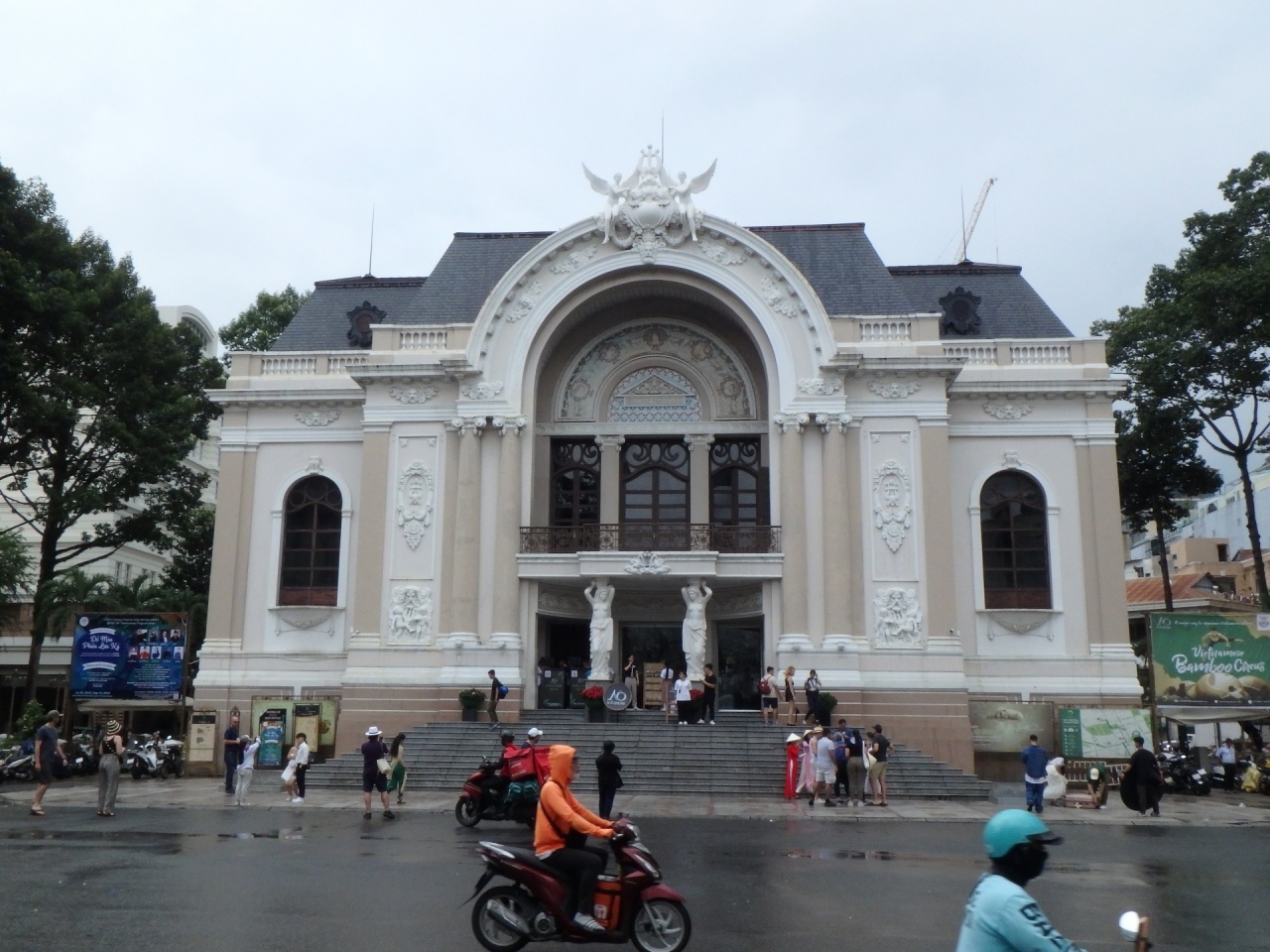 ホーチミンで観光客が多く訪れるドンコイ通りにある劇場。フランス統治時代に建てられたオペラハウスが今でも現存しており活用されている。バロック様式の建物は記念撮影スポットとしても大活躍。おそらく観光客がレンタルのアオザイを着て記念写真を撮ったり、結婚式の前撮りをしているカップルがいたりと大人気だった。そんな様子を眺めているのも楽しかったな。