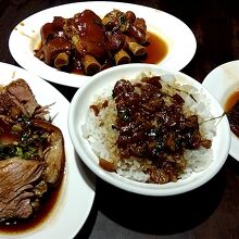 頼んだのは霸王腿扣、霸王腿節、潤油豆腐、魯蛋、そして魯肉飯。