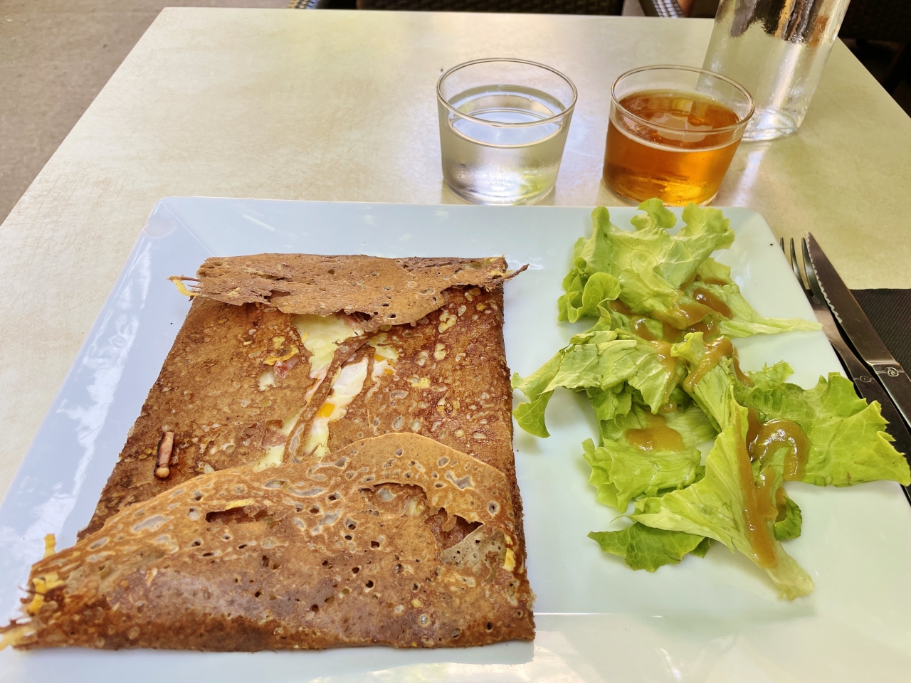 かつてゴッホが入院したアルル市立病院、エスパス・ヴァン・ゴッホの中にあります。現在は図書館や展示室、お土産店やカフェなど併設した施設になっています。中庭を見学後、ちょうどお昼時だったのでテラスがあることらのお店でランチ兼休憩しました。ランチメニューはまだ早く、ガレットとクレープのセットを注文、2つ食べるとお腹一杯になりました。席からも中庭が見渡せて良い眺めでした。
