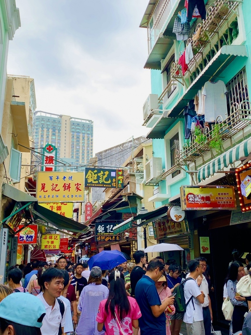 お土産ショッピングや食べ歩きが楽しいマカオの繁華街!