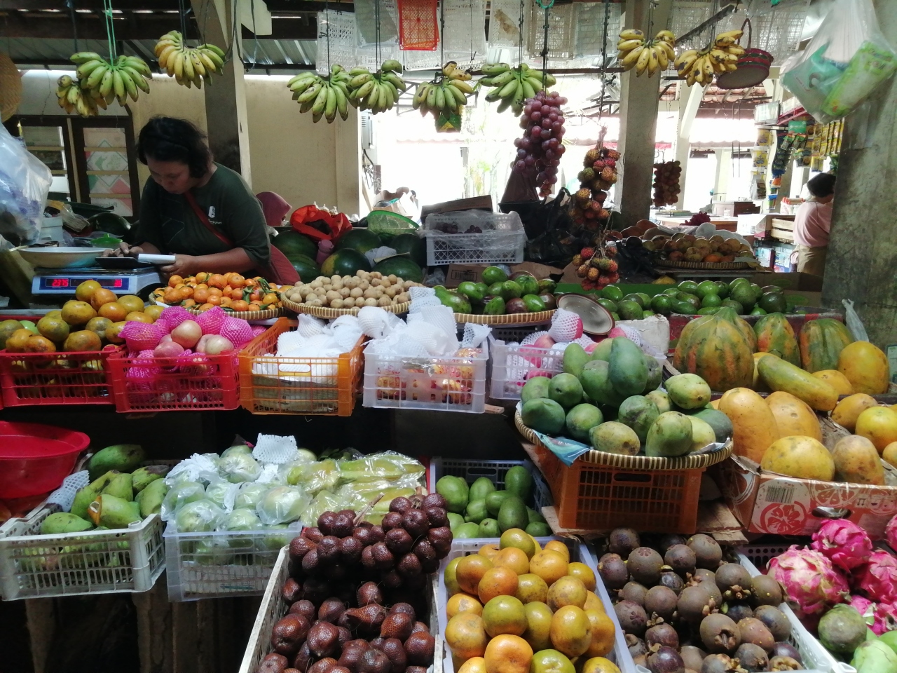かつては鳥を扱う市場でしたが、現在は普通の市場になっています。肉や野菜などの生鮮品、果物、食品、雑貨類と一通り揃っていますが規模が小さく、閉まっている店も多く、ほそぼそとやっている感じです。ローカル感は満載です。タマンサリの出口からカンポン(村)の路地を抜けて行くこともできます。徒歩約3分ほど。昼の12時頃には営業を終了してしまう店が多いのでご注意を…。