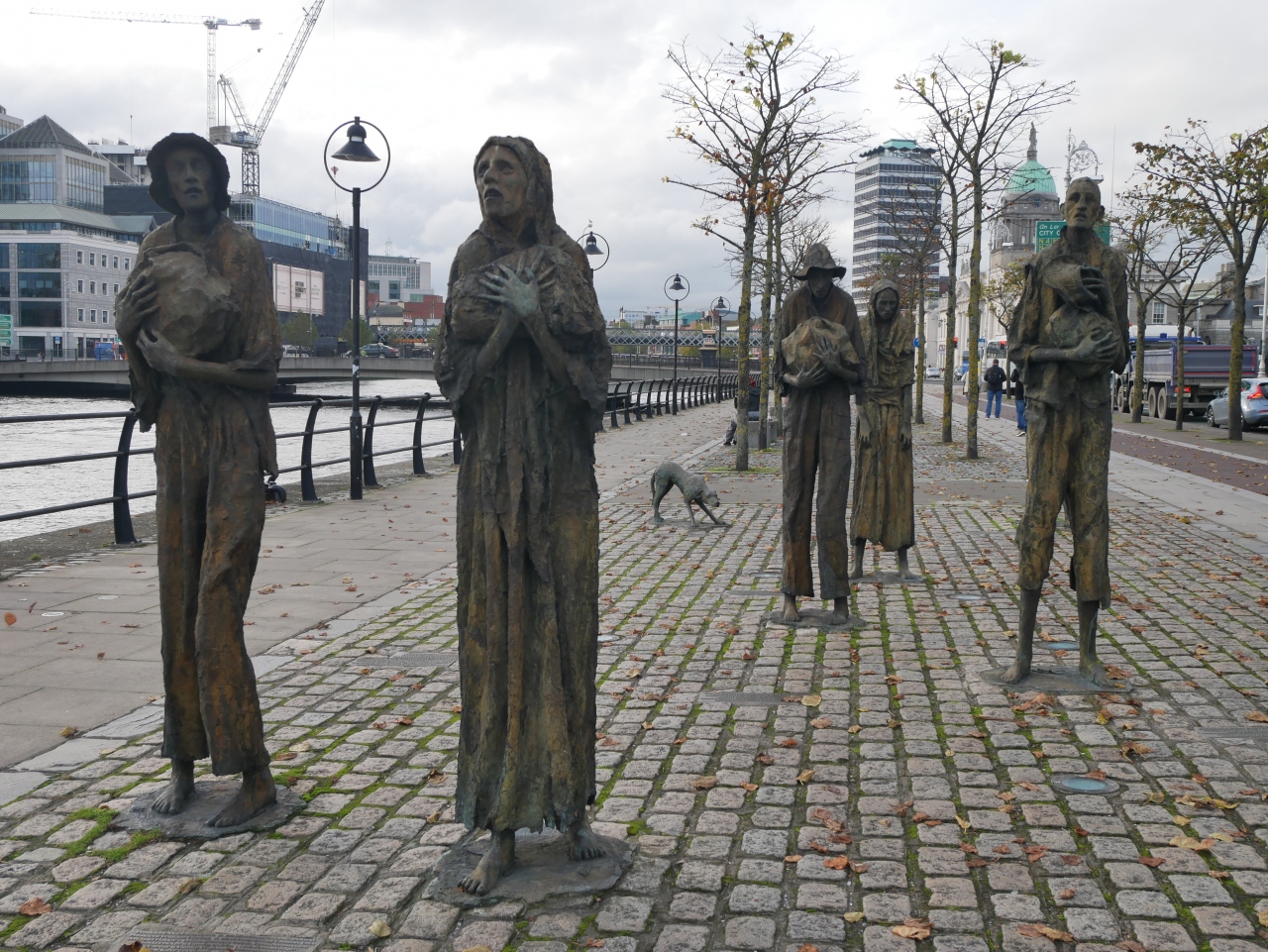 街中を歩いていていきなりこれが出てくるとびっくりすると思います。こちらは1845~49年にダブリンで起こった大飢饉を記念して1997年に作られたもので飢饉で食べるものがなくなりやせ細った人や犬の像で現在のっ平和な街とのギャップがすごいです。