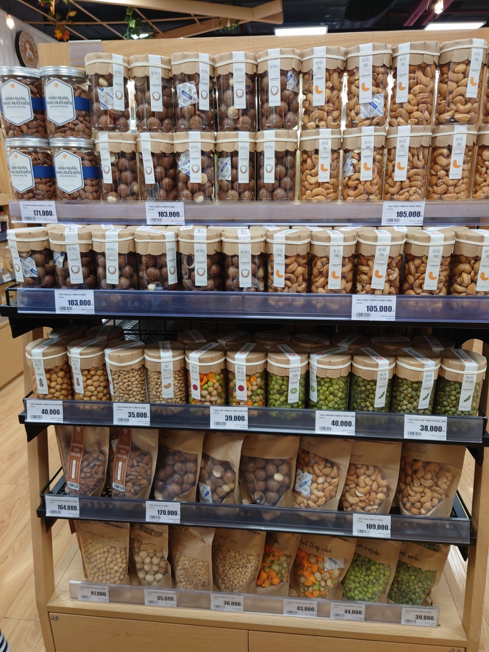 ロッテセンターハノイには1階にロッテデパート、ロッテホテルやレジデンス、地下には日本のデパ地下のようなロッテマートがあります。広くて品揃えがいいのでここで生活してる人はもちろんですが、旅行のお土産を買うのにも良いです。私的にはダラットの専門ブランドのLangfarmのドライマンゴーやカシューナッツ、殻付のマカダミアンナッツなど、Langfarmの商品が特にお勧めです。他のと比べるとちょっと値段は高めですが品質と味が最高です。ロッテマートの奥一角がLangfarmの売り場です。