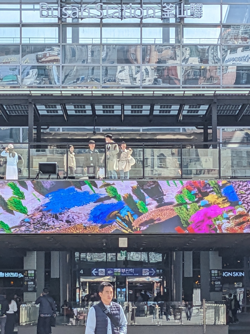1階には飲食店街も充実しています。キンパ天国カフェで食事をしたかったのですが、ハングル語が読めないので、それらしき店を見つけられませんでした。駅全体に、英語表記の案内がもっとあると良いのになあと、思いました。新しくきれいな駅舎で、賑わっていました。