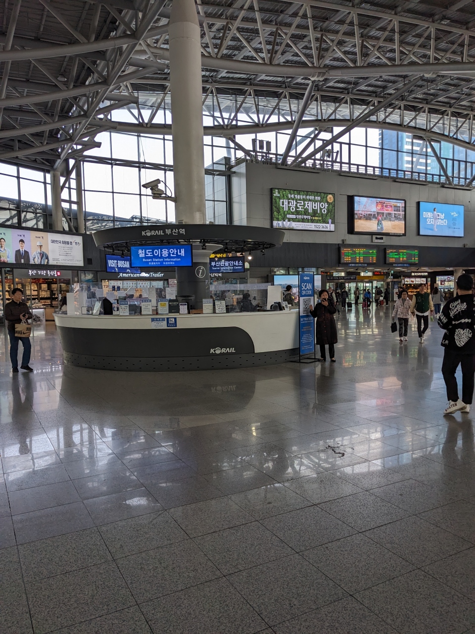 国際フェリーターミナル連絡通路への出口場所が、案内図に記されていなかったので、ここで尋ねました。日本語が通じるかは不明ですが、英語と指差しで教えてくれました。連絡通路は、屋根がありますがとても長く、重い荷物を持った方には大変かなと思いました。