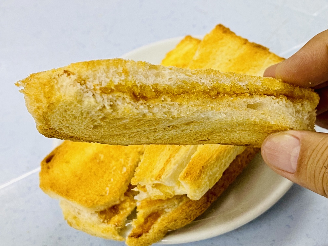 トーストは中まで均一にサクサクと仕上がる様、考えられた薄さで食感が良い。