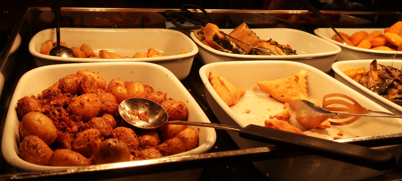 1898年創業のベジタリアンビュッフェレストランで、2023年は開業125年の記念年だとの表示もありました。宿泊していたホテル近くにあったバーンホフ通り店を利用しました。ガラスのエレベーターに乗って最上階に上がったところがレストランで、屋上ならではのルーフテラス席もありました。地元の方でも、おひとり様で利用している人も結構見かけたので、旅行者も気軽に利用できると思います。ビュッフェから好きなものを盛り付けて清算するシステムです。2000円程で新鮮な野菜や果物をたっぷり補給できるので、スイスでは貴重なお店だと思います。テイクアウトしてホテルの部屋でいただきました。
