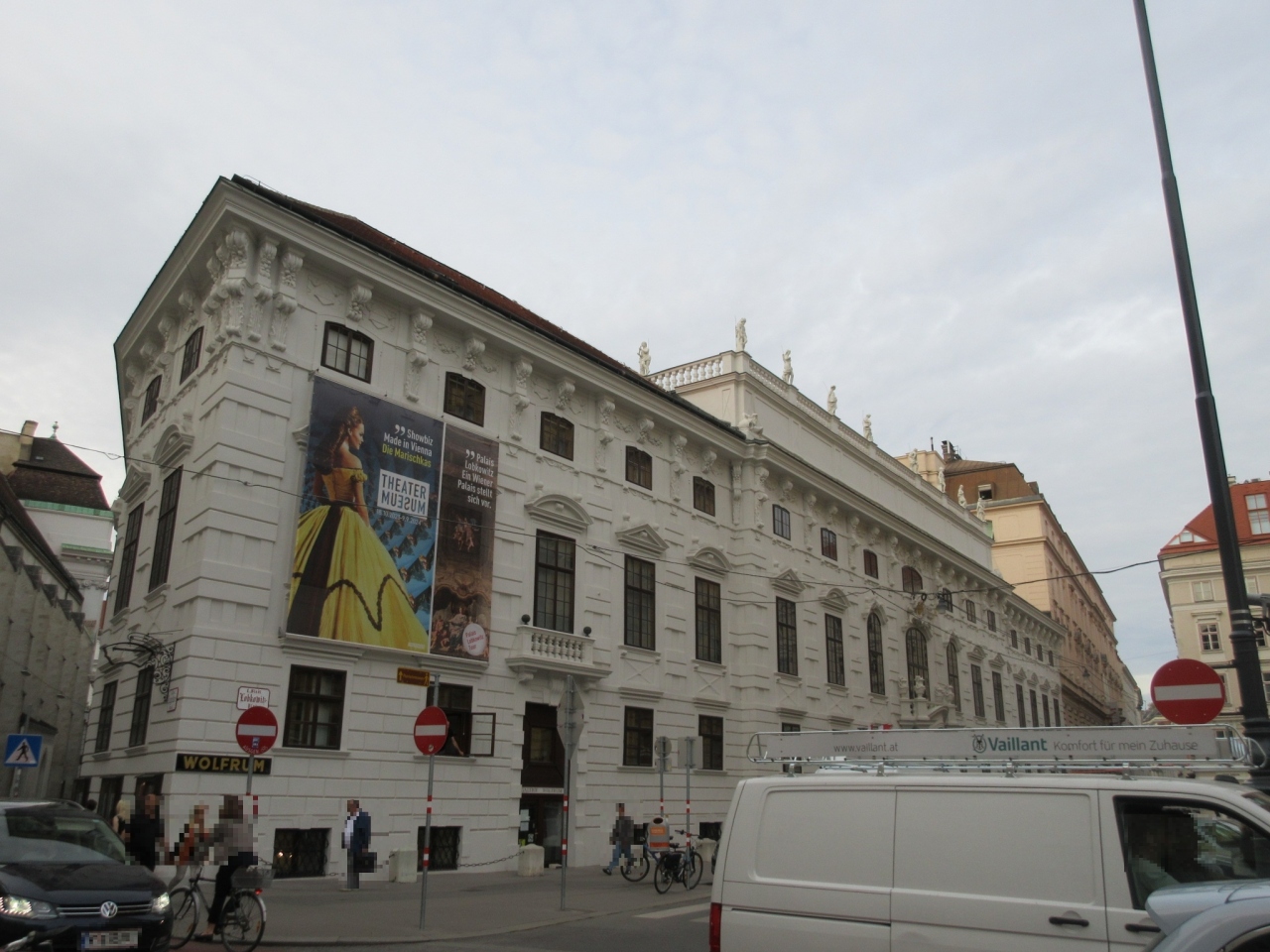 【アルベルティーナ美術館】からグレーベン通りやシュテファン寺院へと通じる道沿いに、こちらの白亜の大きな宮殿のよう博物館があり立ち寄りました。【アルベルティーナ広場】に近い道路に面してシシーを思わせるような貴婦人の建物2階分ほどのポスターが壁面に掲げられていて、インパクトがありました。入口脇の壁面の表記を見ますと確かに以前は宮殿でったようで。柱やエントランスの装飾など非常に手が込んでいました。