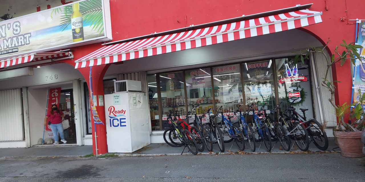 グアムのホテルロード沿いにあるちいさなコンビニエンスストアです。ABCストアのようなアメリカのものがメインのコンビニというわけではなくて、グアム土産と日系、アジア系の食品を多めに取り扱っているコンビニでした。
