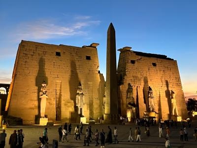 ルクソール神殿はカルナック神殿の副祭殿として造られた。カルナック神殿とスフィンクス参道で結ばれています。第一塔門前にあるオベリスクが有名、かつて2本あったオベリスクは1本のみ。もう1本はパリのコンコルド広場にあります。