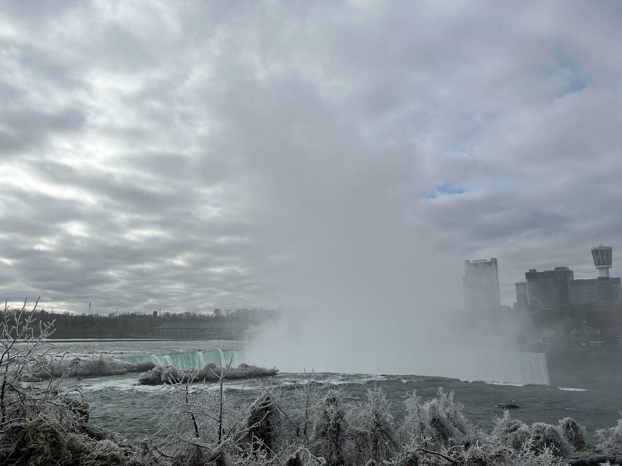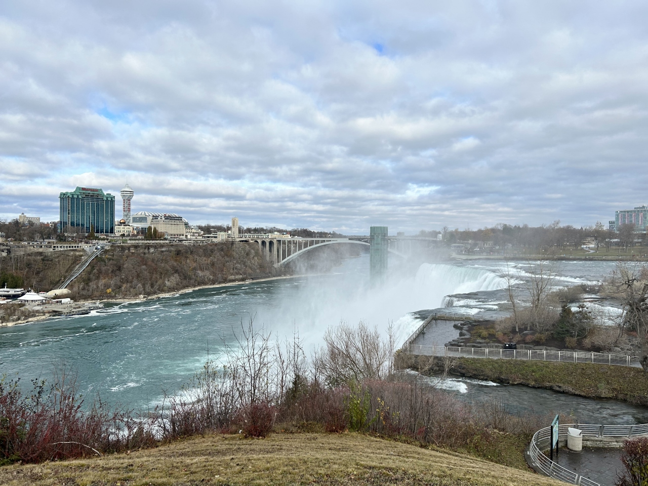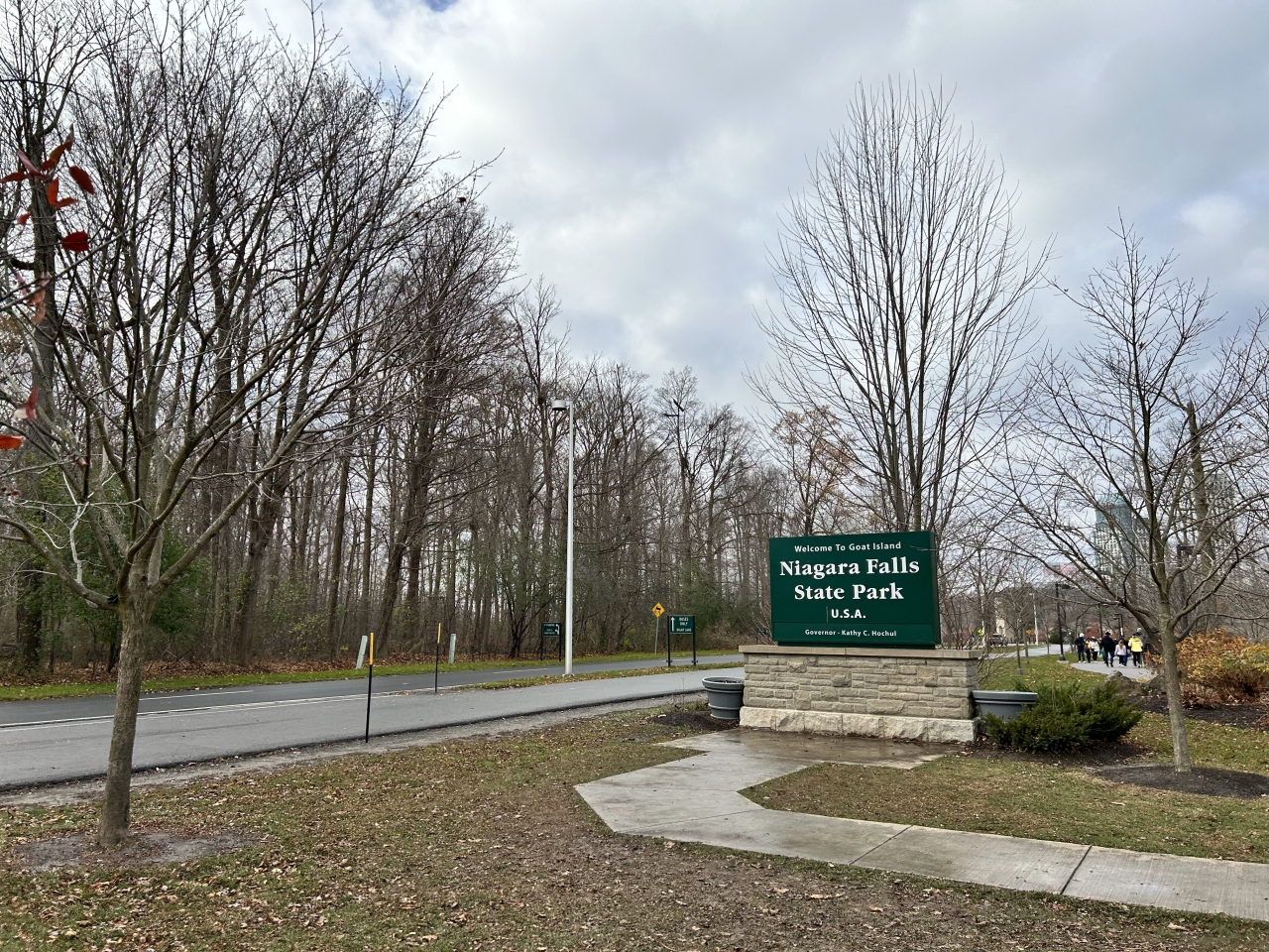 ナイアガラの滝のすぐ上流にある、アメリカ側からアプローチできる中洲の島です。滝を眺められるポイントや、滝の下側に降りていくアトラクション(風の洞窟)へのアクセスなどが整備された自然公園となっており、11月末の初冬でも多くの人で賑わっていました。ナイアガラの滝のアメリカ側を観光する場合は、本土のプロスペクトポイントとこのゴート島がメインになると考えて良いかと思います。