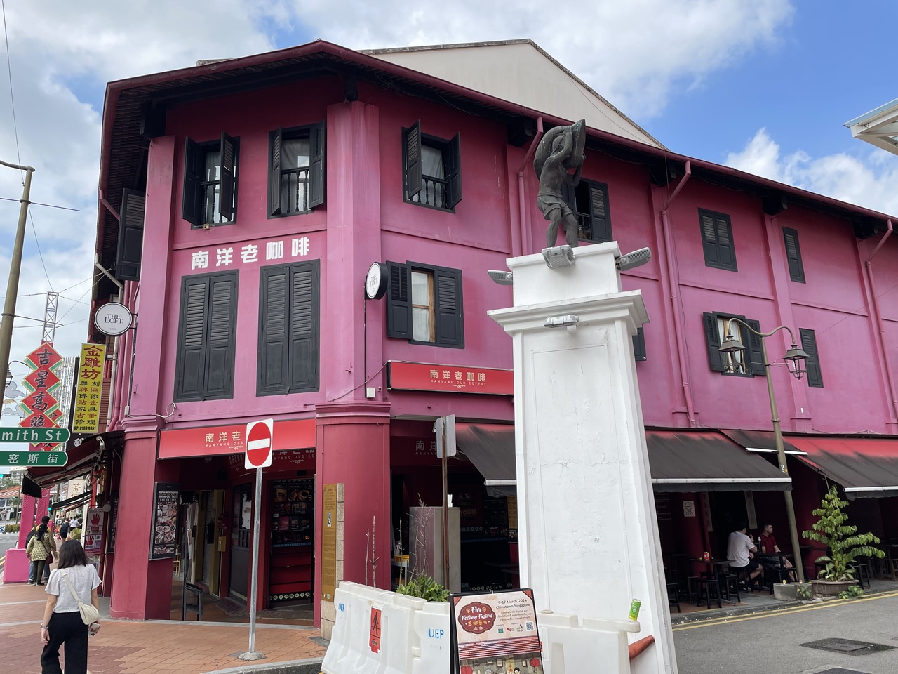 シンガポール チャイナタウン。南洋老珈琲・向かいにコナンのアート画