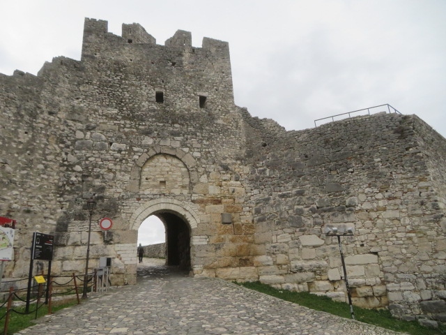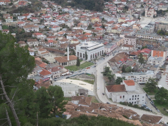 ベラト市街の観光で最初にベラト城に行きました、高台にあるので眺めがいいです、オムス川や千の窓を持つ街、マンガレム地区など見ることが出来ます、山麓にある聖ミハイル教会を見ることも出来ました、城の歴史は古く紀元前4世紀には砦が築かれていたようです、城内には民家や教会、博物館もあります、散策した後は眺めた市街地に行きました。