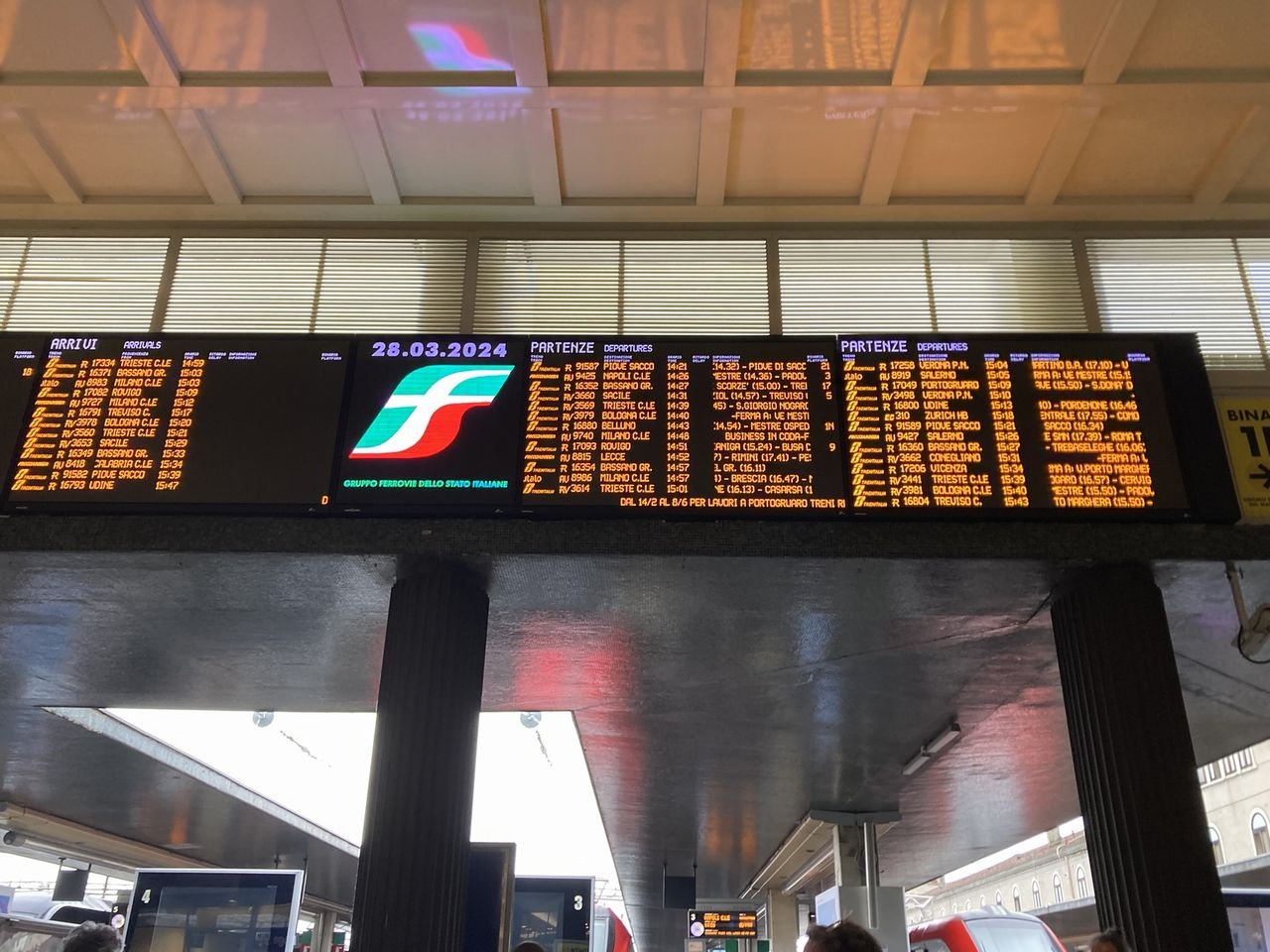 ベネツィアから次の滞在地ボローニャへ、サンタルチア駅からトレニタリア・フレッチャロッサで移動しました。
