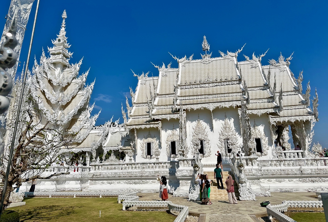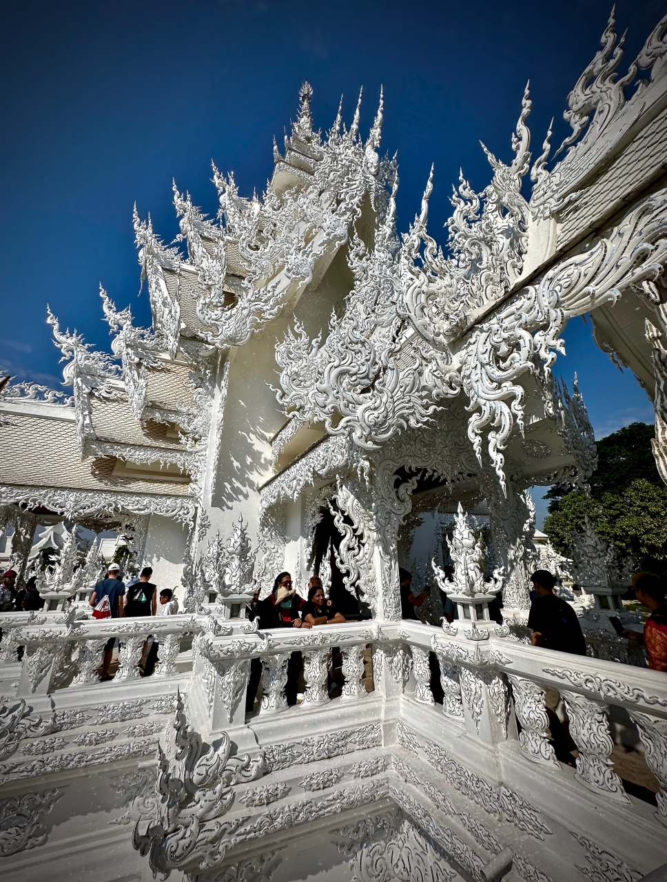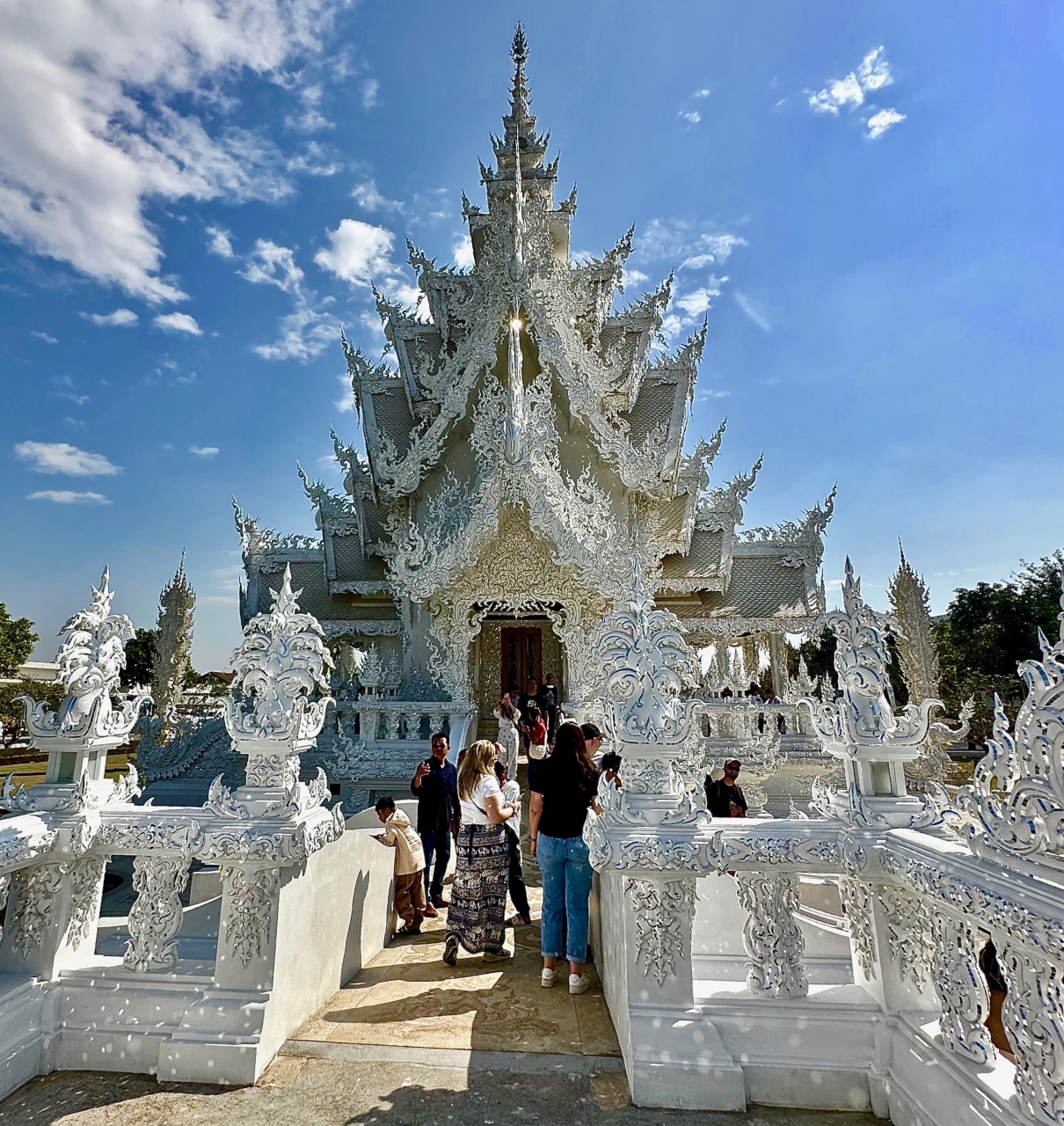 白亜のお寺...「伝統的な寺」というよりも『現代のモダンアート的な寺』なんだとか...(白い寺/チェンライ/タイ)
