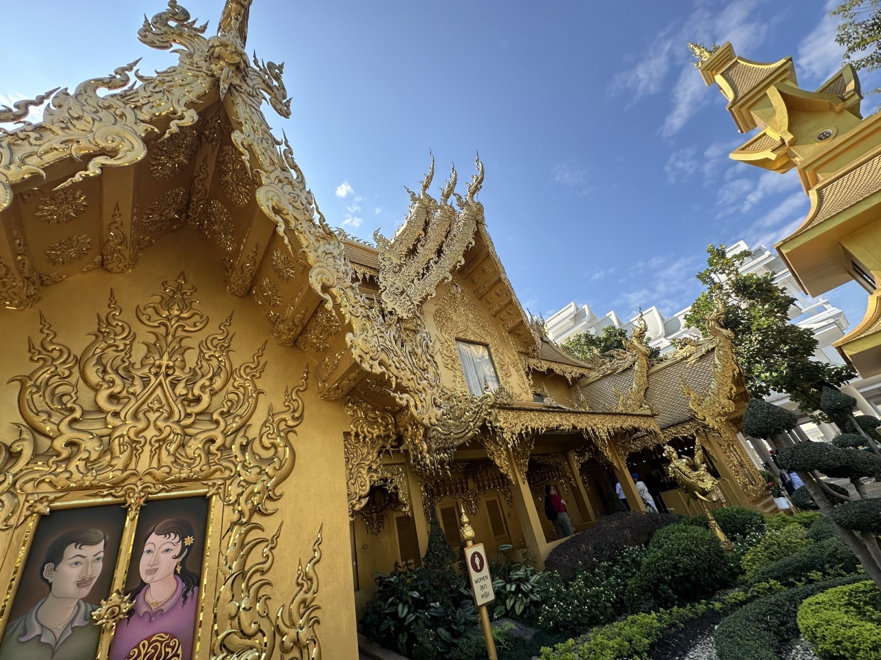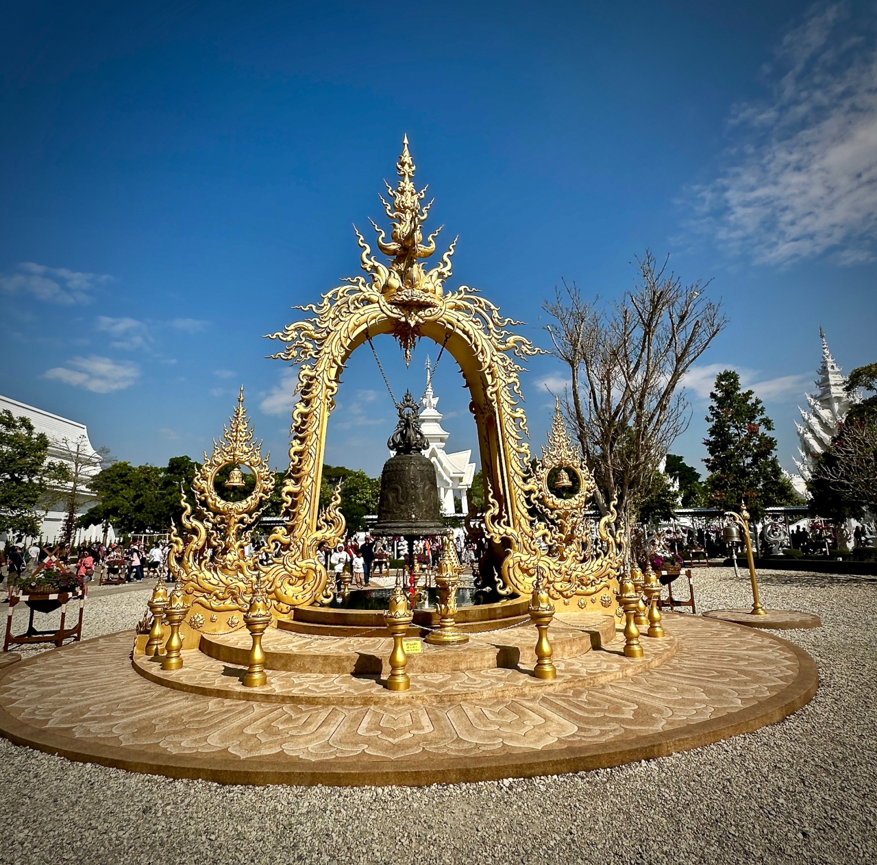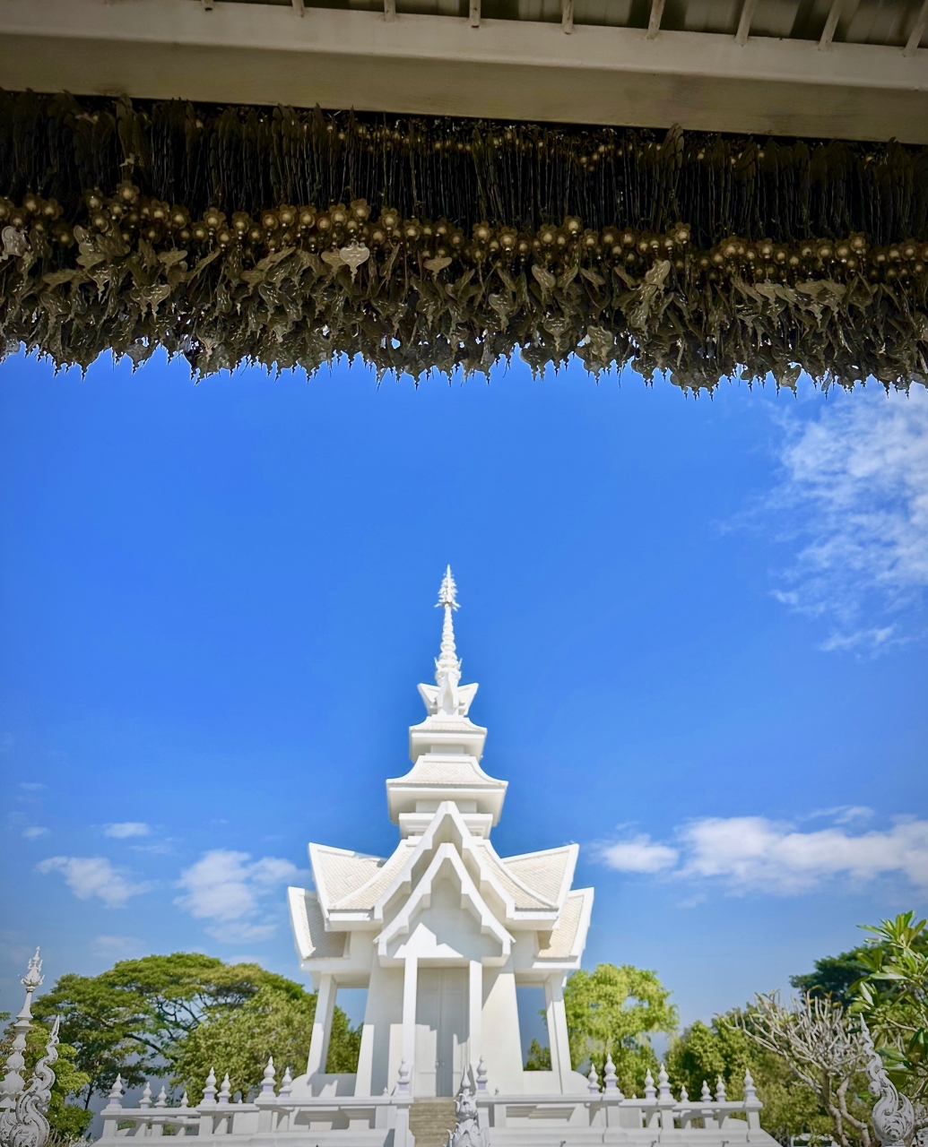 寺自体は、真っ白で見栄えが良く、建築技術は繊細で非常に見応えがあるのだが、ここはタイ人の芸術家によりデザインされたモダンアートの類の最近(1997年に建てられた)近代建築物。