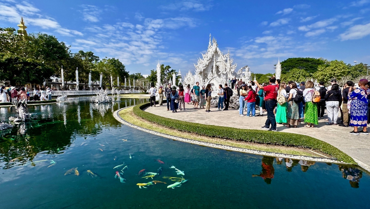 他の観光都市に比べて、ここ田舎のチェンライは、観光地が極端に少ない中で、このワットローンクン(白い寺)はメインの観光地といっても過言ではない。