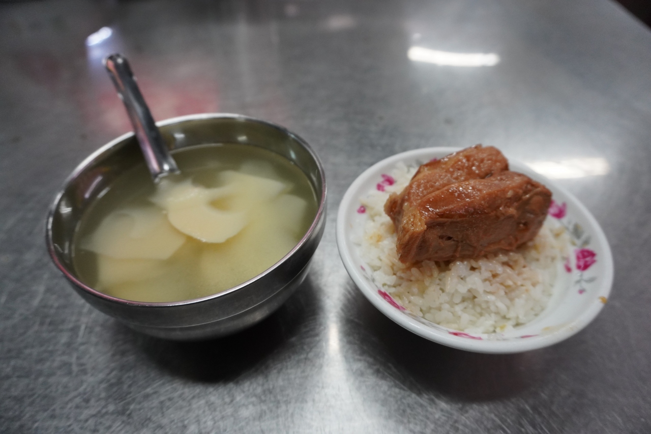 台中に来たら食べてみたかった、ご飯に大きな角煮を乗せたスタイルの魯肉飯をいただくことができました。