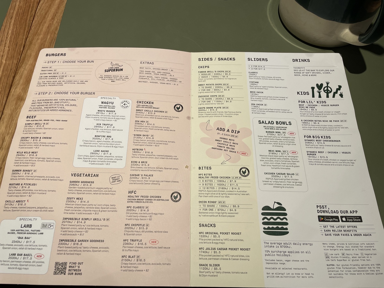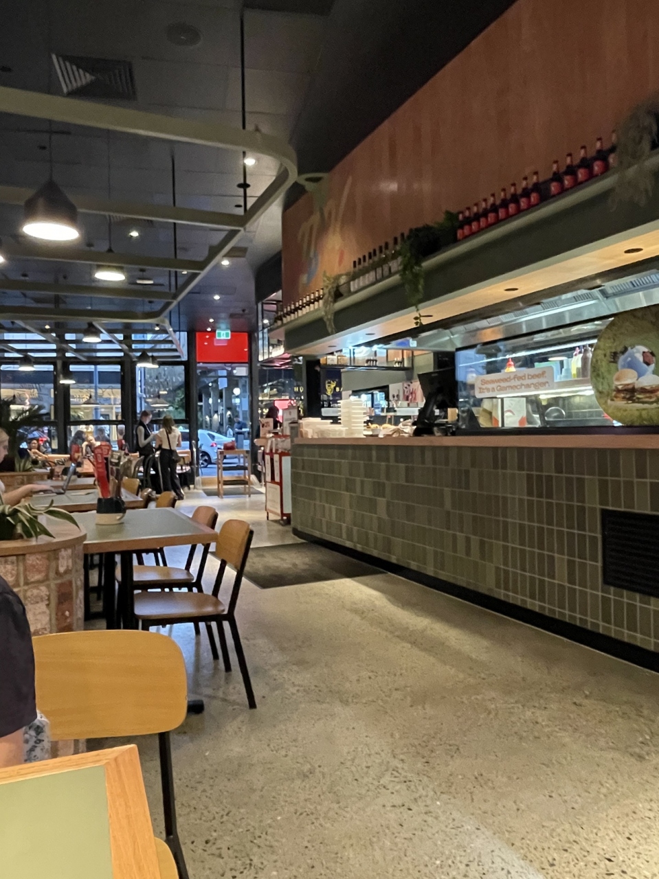 ビックキッズ向けを注文。ダイナミックbeefバーガーとオレンジサンキストジュースを頼んで19.10オーストラリアドル。