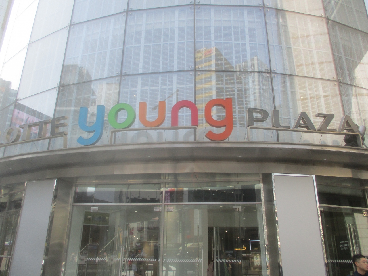 隣にあるロッテデパートはいわゆる百貨店の品揃えなのに対して、ロッテヤングプラザは若者向けの手軽な衣料品が中心でした。デパート側に比べるとフロアの面積は小さかったです。デパート地下とは直接つながっていないようで、一度、明洞地下街に出る必要がありました。