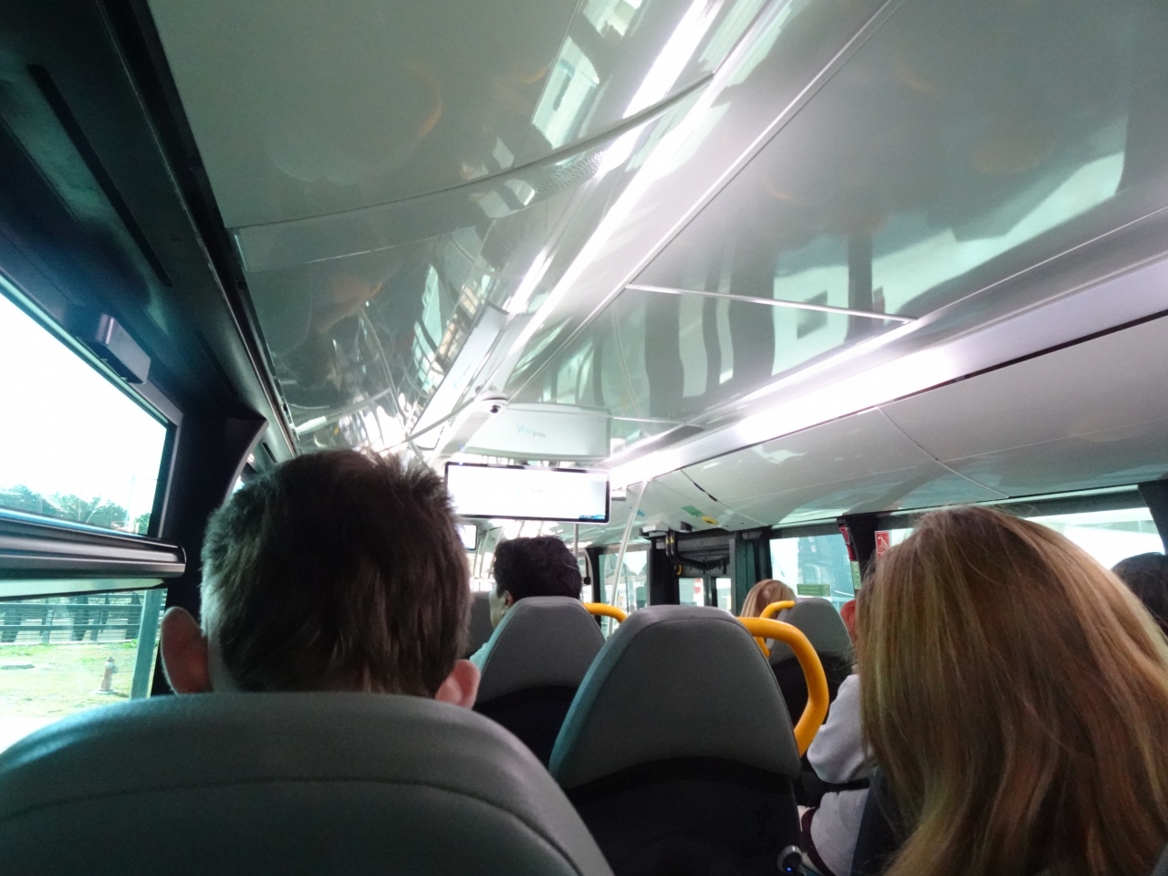 バスは立ち席がないので必ず座れますし、ちょっと汚いですが大きな荷物置き場もきちんと備わっています。
