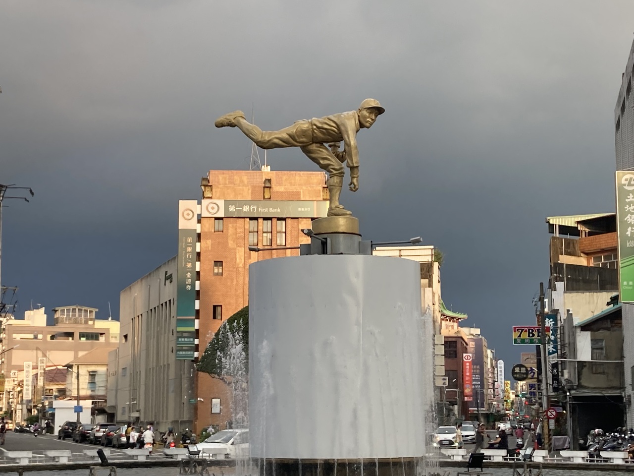 1931年の夏の甲子園野球大会で準優勝となった台湾代表嘉義農林。そのエースであった呉明捷投手の手銅像が町の中心街に建立されていました。それも巨大、かつ金色、それにゆっくりとくるくると回るのです。