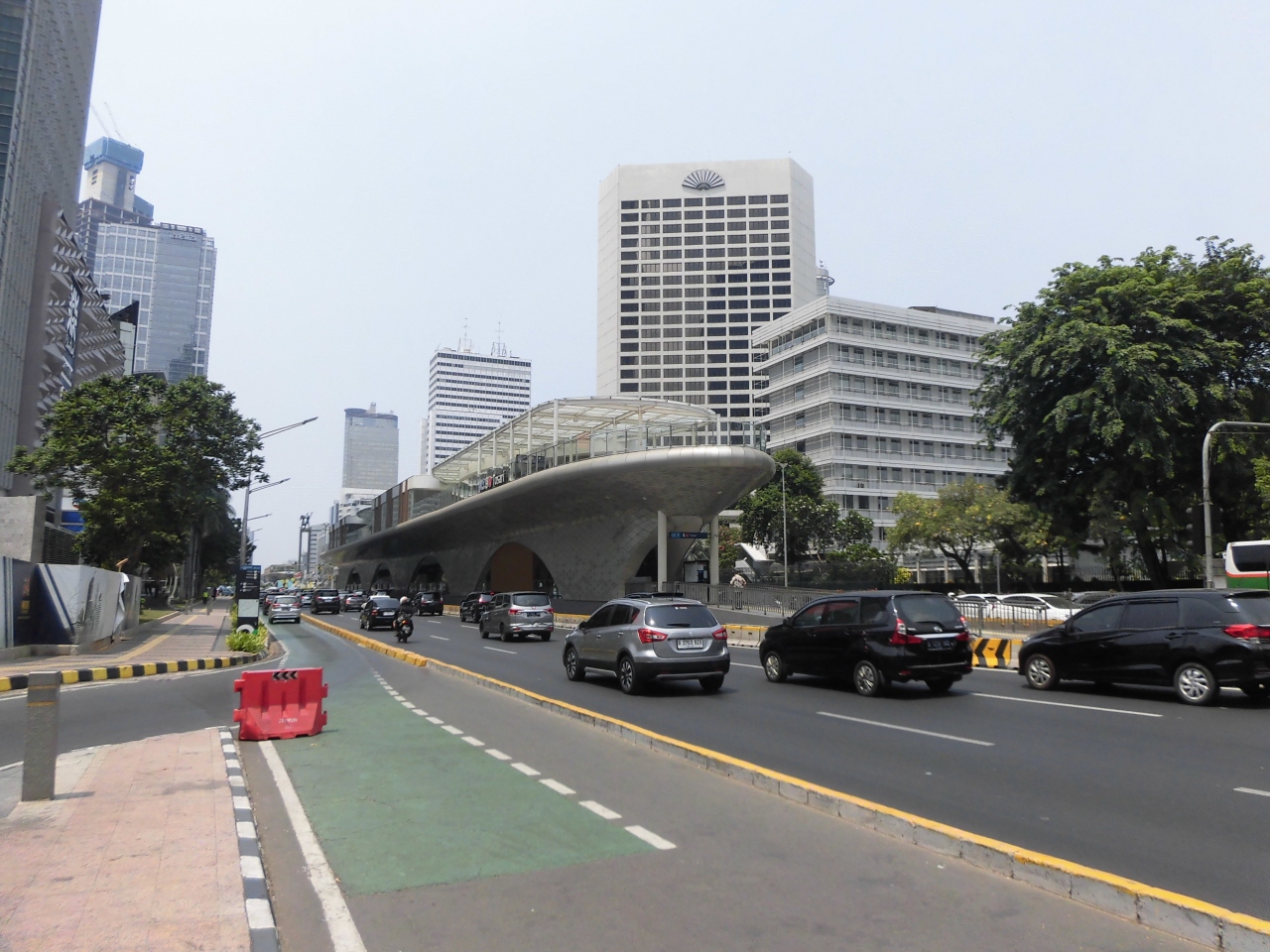 トランスジャカルタの宇宙船のような巨大な駅が近くにあり路線が多く便利。地下鉄だとDukus Atlas BNI駅が最寄りです。