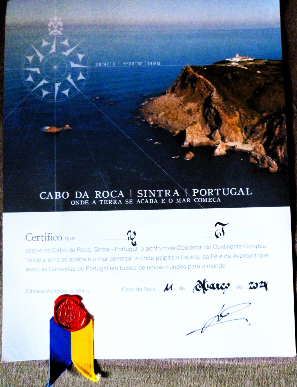 ロカ岬の「最西端到達証明書」ツァーで渡されましたが、姓名が記載(Y## T##);姓名が書かれているのは、びっくり!