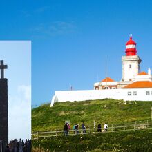 ユーラシア大陸の最西端<ロカ岬>…`灯台`と`記念碑`があります(`ユーラシア大陸`;随分久しぶりに単語ですね(^^) 先ずは、`ユーラシア大陸最西端`の記念碑に;記念碑;有名な`地終わり海始まる`(詩人ルイス デ カモンイス)です☆ 赤い屋根の可愛らしい灯台(1772年)