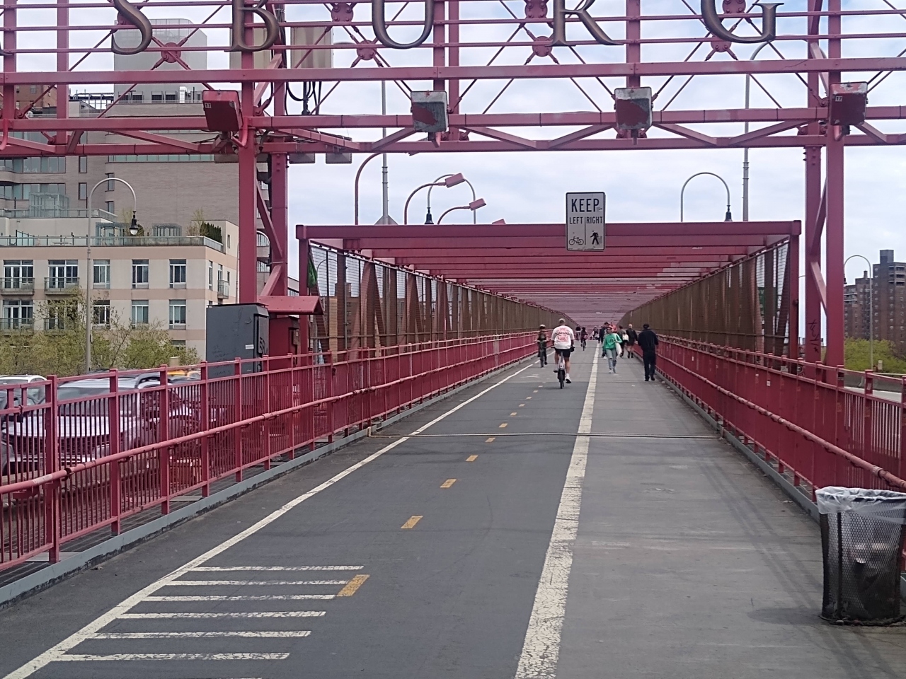 ローアーイーストサイドとブルックリンのウィリアムズバーグを結ぶ橋です。遠くからでは分かりづらいですが、近くにいくとピンク色に塗られているのが分かり、ちょっと可愛いなぁと思いました。ここも歩いて渡れます。自転車で通勤や運動をしているような地元の人も多い気がします。