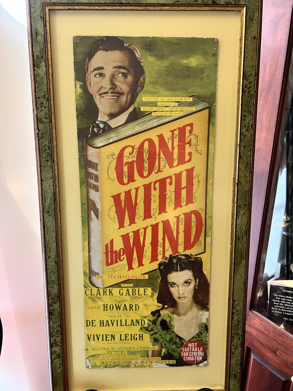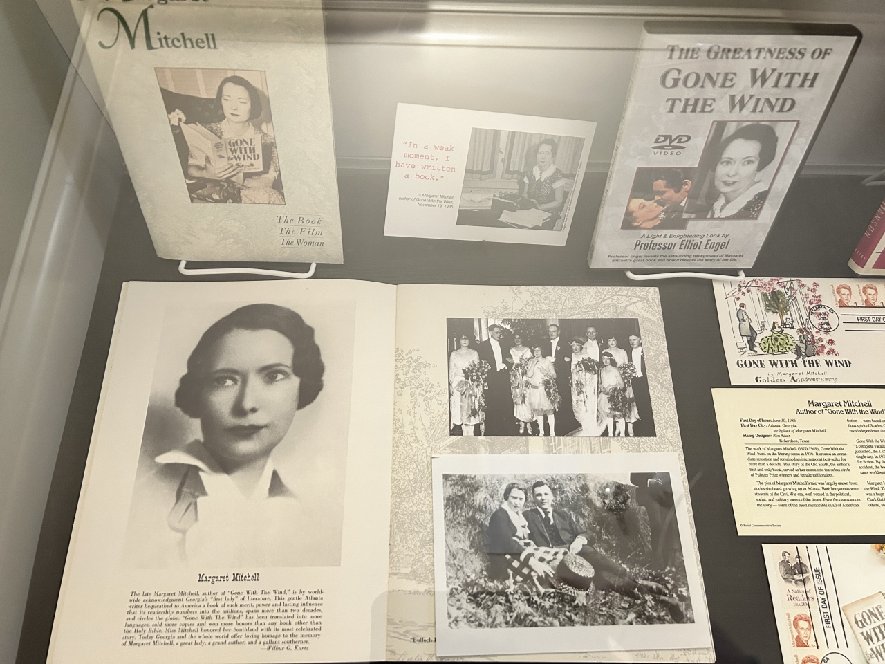 南北戦争前の邸宅である「ブランビー・ホール&ガーデンズ(Brumby Hall & Gardens)」が博物館に転用されています。この博物館は、元は町の中心のマリエッタ広場にあったのですが、タラのようなファサードと大きな玄関ポーチを備えたこのブランビーホールに移転したそうです。そして博物館のコレクションは、ヴィッキー・リン・ロジャースという方が30年以上にわたって収集してきたものを筆頭に、寄贈や貸し出しされた品々が展示されているようです。館内は「風と共に去りぬ」を世に出した「マーガレット・ミッチェル」の紹介、1940年の第12回アカデミー賞にて、作品賞・監督賞・主演女優賞・助演女優賞・脚色賞などの8つのオスカーを始め、特別賞・技術成果賞を含む10部門を受賞した映画に使われたオリジナルの衣装や小道具、セットの一部などが並びます。「風と共に去りぬ」の舞台はアトランタですが、アトランタの「マーガレット・ミッチェルの家」はまだ閉館中。そうなるとやはり、ここに来てみたくもなりましたので訪れましたが、豊富な展示で見応えがありました。